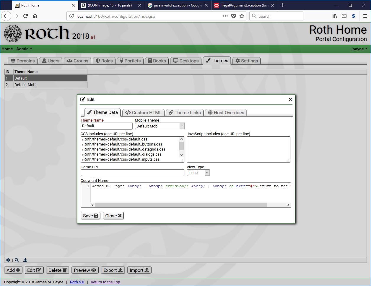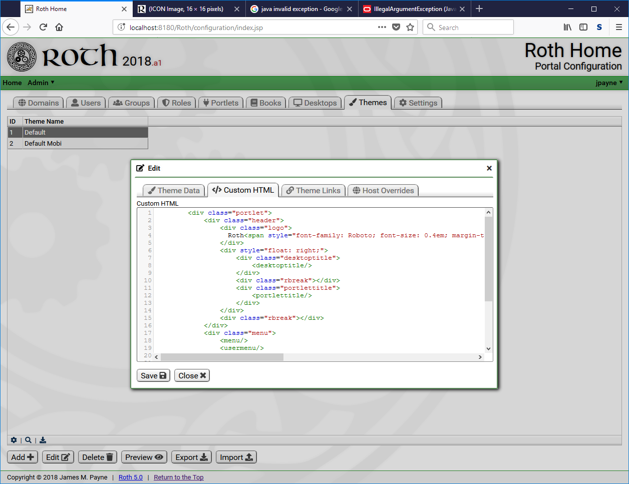Roth is a continuation and successor of the JpPortal framework. (Roth is an Irish word pronounced 'row-h' which means 'wheel' -- as in "Why reinvent the wheel?" -- "To make it better!")