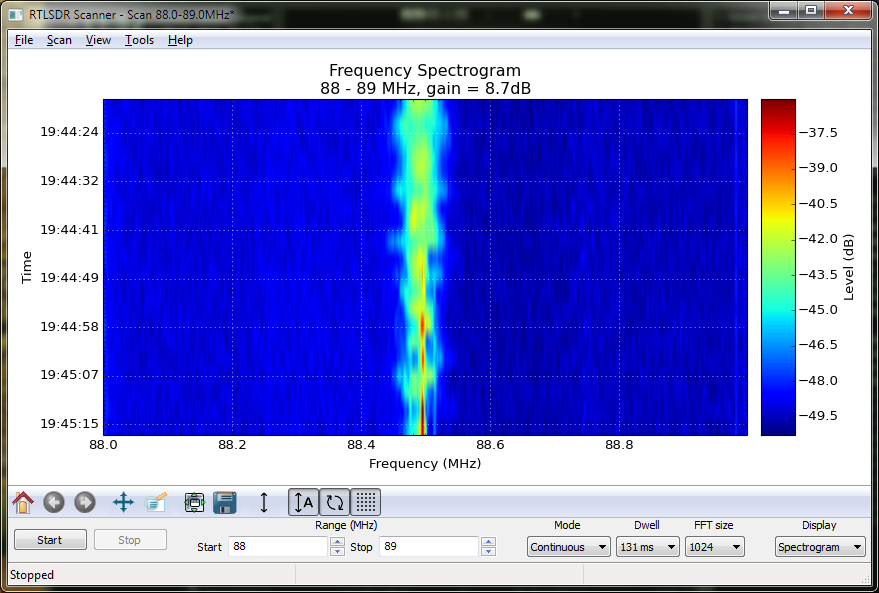 This is an excellent application; specifically it does exactly what it claims to do whereas the commercial program, Touchstone Pro, is seriously broken. I did have installation problems and it took a lot of effort to get around that, but the author was helpful. I got into this low-cost spectrum analyzer thing because a client of mine wants to reduce the EMI (electro-magnetic interference) from a product I designed. He did not fund an EMI study in the first place and is reluctant to spend money now on equipment, but I hate just guessing so I'm trying to put together a simple EMI evaluation setup on my own nickel. I started with RF Viewer and Touchstone Pro from NutsAboutNets. To cut a long story short, Touchstone Pro is making some bad mistakes in the signal processing and the output spectrum is polluted by artifacts that are not actual input signals. I discovered this when I found RTLSDR Scanner, which produces a spectrum that I can explain in every detail. It is well known that the Realtek RTL2832U hardware dongle produces signals at 28.8 MHz and its harmonics and I can see these clearly. I can also see the radio stations in the FM broadcast band and there's nothing I can do about that without a radio-proof room. Otherwise, what I'm seeing makes sense in terms of the experiments I'm carrying out, which wasn't the case with Touchstone Pro. RTLSDR Scanner is under active development and it has a few rough edges that I won't go into because they'll probably be fixed by the time anyone reads this. Its basic feature set is pretty much what I need, plus stuff that I don't need but you might. If you decide to buy a dongle and try this out, note that scanning and producing a spectrum is slow. This is a limitation of the dongle and not the software, so don't be critical of RTLSDR Scanner because it's slow. Same thing with the lower and upper frequency limits. If you want anything much better than this you're going to have to spend about 1,000 bucks, so keep that in mind. I'll be sending the author 50 bucks, about what I wasted on Touchstone Pro, and I suggest you do the same. The world needs software like this.