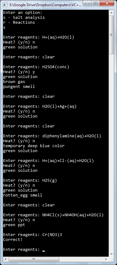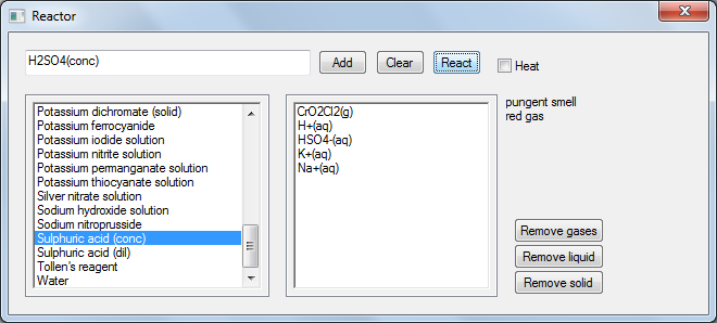 1. Carry out reactions: The reaction mode allow users to write a set of reactants and see what the products will be. Physical characteristics like color of precipitate formed and smell of gas evolved will also be displayed.