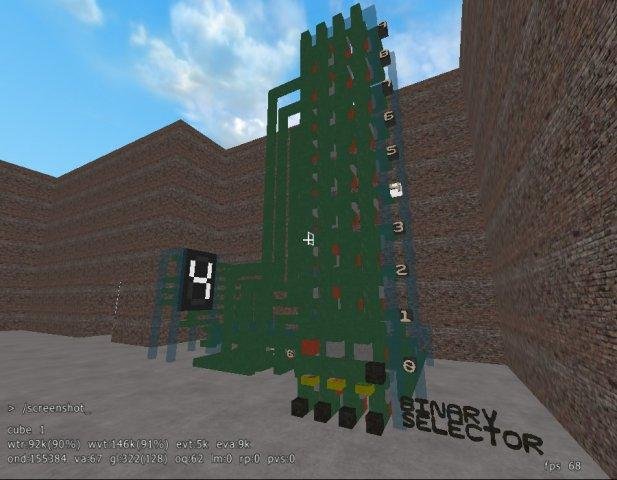 Sauerbraten justice edition(svn) with ingame circuit simulator (minecraft inspired) & builtin minecraft level loader. Design your own circuitry in 3D using excellent sauerbraten editing system. Create alu, ram, rom, segment display, counter...