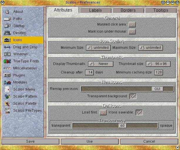 Scalos is a desktop replacement for the Amiga. Some of its features: 100% Workbench replacement, Undo and Redo, 64bit arithmetic, Fully multitasking, Icon imagetypes, Icon datatype system, Icon dragging is more stable, Cybergraphics and Picasso96 24bit color support, Window patterns, Optimised backgroundpatterns routine, Live updating window scrolling, Drawer windows can be iconified, Menu preferences, Application Interface (API)