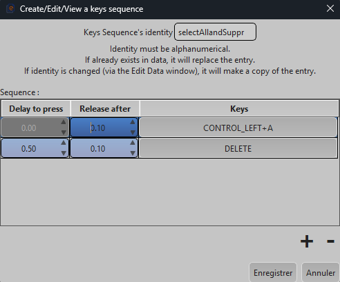 - Keys sequence