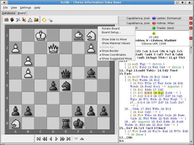 Scidb is an open-source chess database application for Windows, Unix/Linux. It is a new development inspired by Scid.