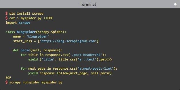 - Telnet console to hook into a Python console running inside your Scrapy process