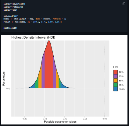 - Support for Bayesian model visualizations: highest density intervals (HDI), posterior distributions etc.