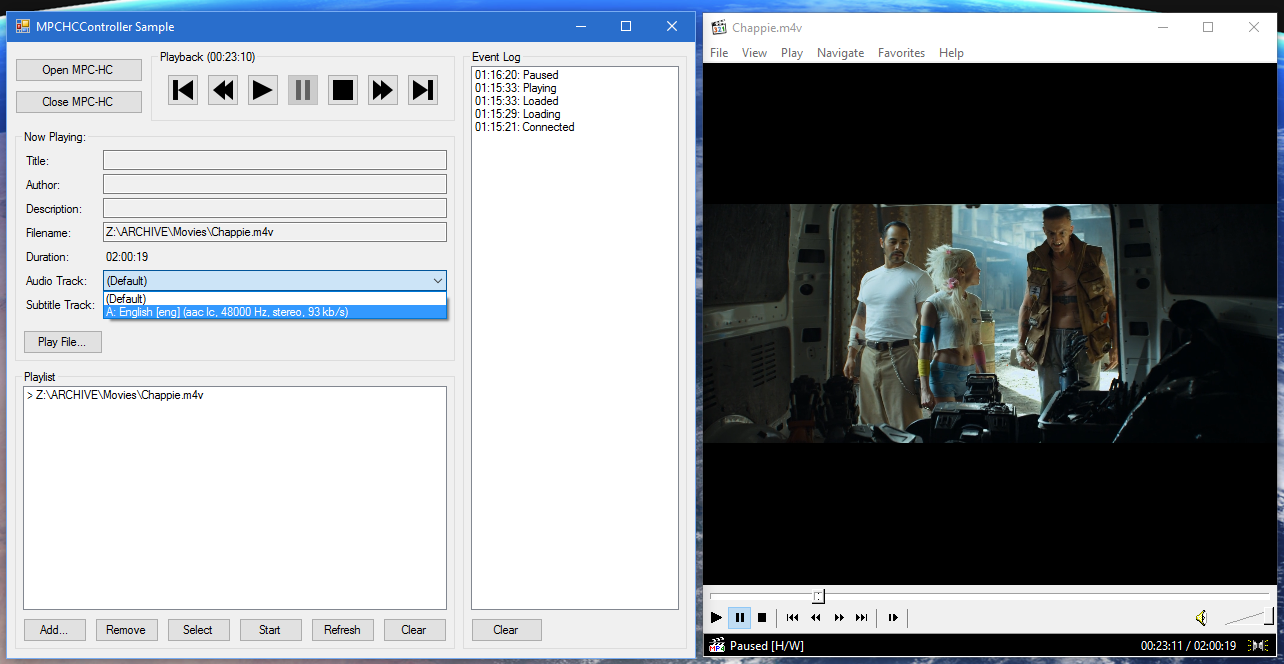 This Control uses Windows messaging and WM_COPYDATA to communicate with and control MPC-HC with simple, easy-to-use methods, events, and connected objects.