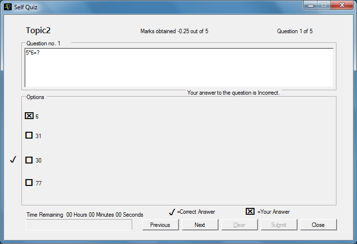 This is a multiple choice quiz conducting application software. It allows user to set marking points for each correct and incorrect answer. Scorecard can be generated at the end of the quiz in .png format and one may review questions to locate mistakes made/committed during quiz.