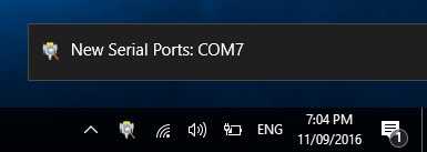 Serial Port Notifier (formerly Serial Port Monitor) sits in your notification tray and monitors the serial ports on your computer. When a port is added or removed, a notification is shown containing the port's COM port name, allowing you to easily keep track of what's been plugged in and out. Program launchers can be defined that allow programs to be quickly started using the selected serial port. Custom labels can also be added to ports to allow for easy identification.