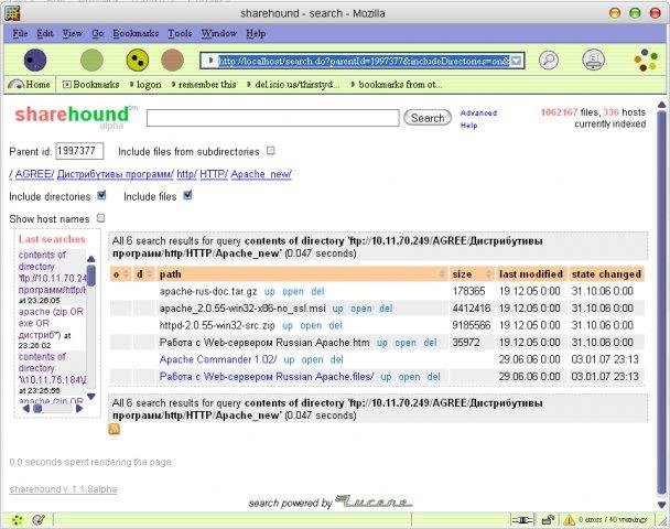 Sharehound is a network file systems indexer and searcher written in Java. Currently supports SMB file shares (i.e. MS Windows-based shares) and FTP resources. Web UI is used for search and crawl monitoring. RSS feed is provided for search results.