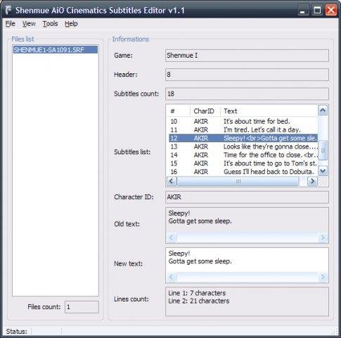 The Shenmue Translation Pack provide tools used to modify the in-game subtitles and every game data in order to localize in your own language Shenmue, What's Shenmue and Shenmue II, on both Dreamcast and Xbox.