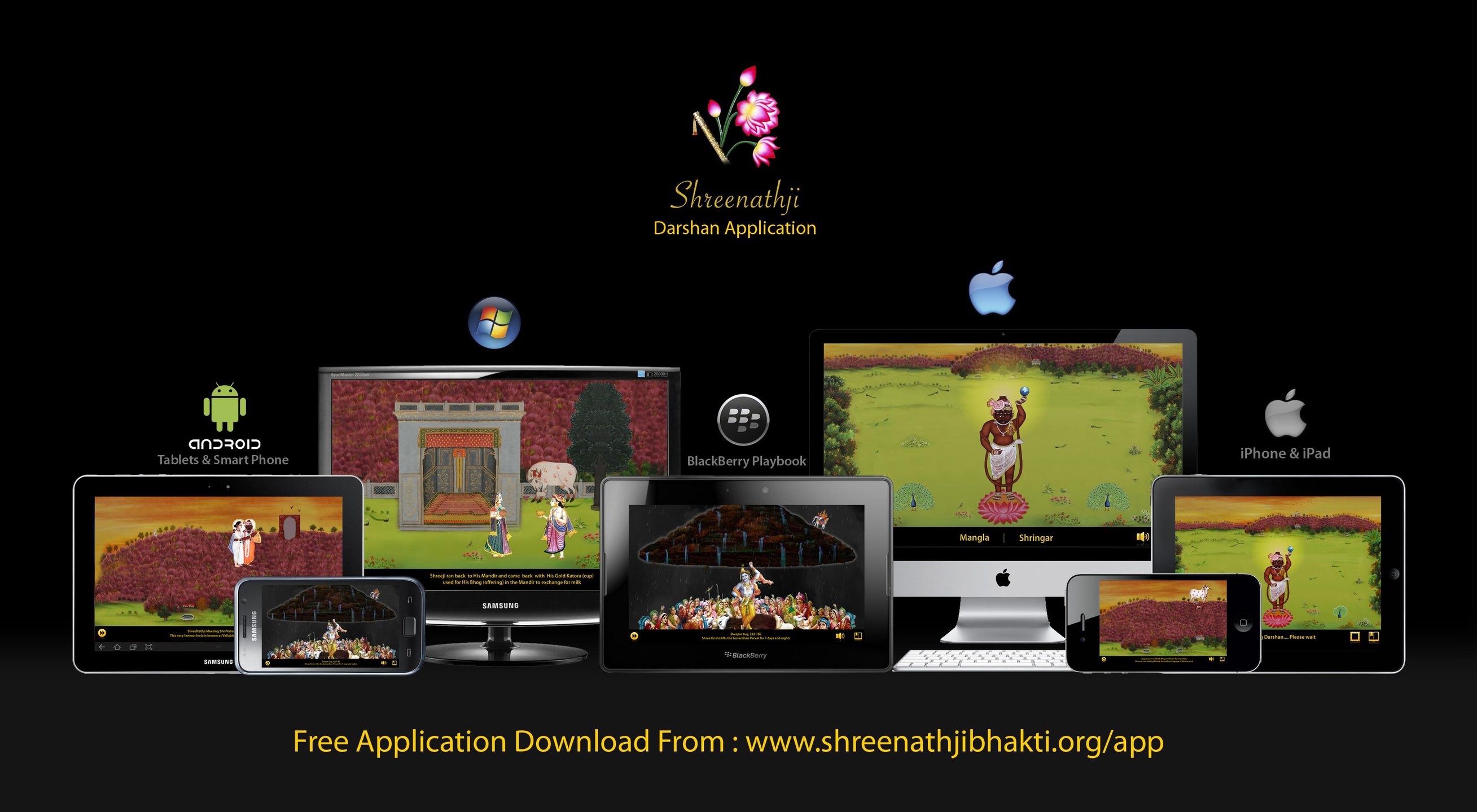 This application helps Thakurji ShreeNathji devotees to have darshan while they are on move. Following are salient features: