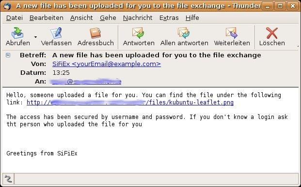 SImple FIle EXchange tool to share files with collegues and/or friends on a webserver. Upload / download /delete files. E-Mail sent out to inform other people. Skinable (via CSS) and multilingual use enabled. Works with PHP4 and PHP5 also with register_g