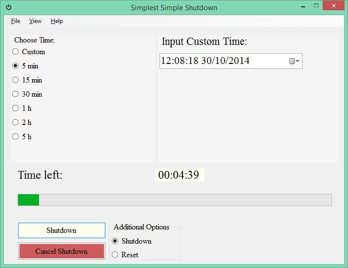 As the name already states. Simplest Simple Shutdown is a project developed based on my own need for a simple program that can make scheduled shutdowns.