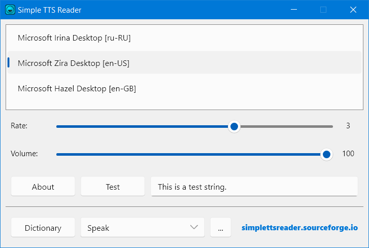 Simple TTS Reader is a small utility that reads text from your clipboard using Microsoft Speech API. Whenever you copy any text, the app instantly converts it into spoken words. Select your preferred speech engine from those installed on your system, such as Microsoft Zira, and adjust speed and volume for personalized playback. The application can also be minimized to the system tray. Plus, it is free and comes with an intuitive interface that makes it accessible to everyone.