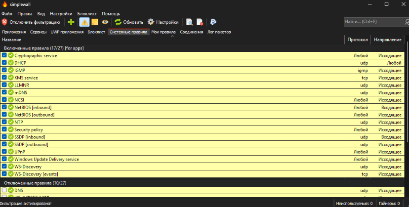 simplewall is an open-source Windows application that provides a user-friendly firewall control interface powered by Windows Filtering Platform (WFP), enabling users to block or allow outgoing and incoming network connections without diving into complex OS settings or command-line tools. The app presents a clean, intuitive UI where users can define rules based on process names, IP addresses, ports, and protocols, making it possible to restrict apps from accessing the internet or control specific traffic flows with fine granularity. Because simplewall leverages WFP directly, it operates at a low level in the network stack, ensuring reliable enforcement of rules system-wide while remaining lightweight. It also includes optional modes like blocking all inbound or outbound traffic except what’s explicitly allowed, and supports temporary rule application, logging, and diagnostic views to help users understand what traffic is being blocked or permitted.