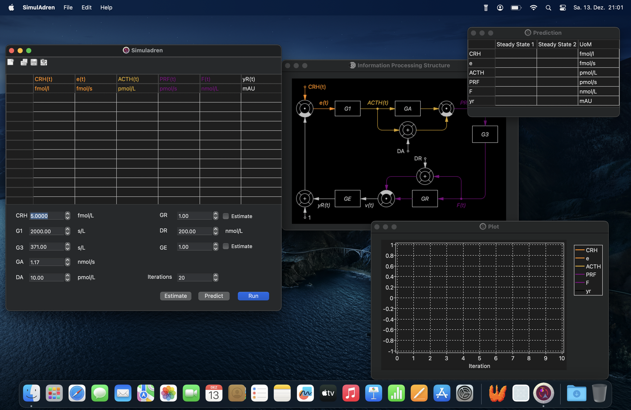 SimulAdren is a simulation program for the hypothalamus-pituitary-adrenal axis (HPA feedback control). It is based on a nonlinear MiMe-NoCoDI model and uses the CyberUnits Bricks class library.