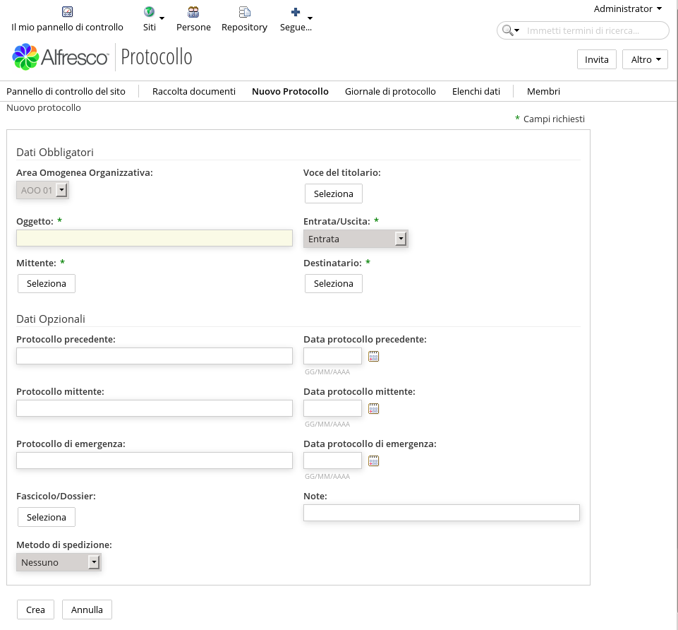 Implementazione del protocollo informatico secondo le specifiche del quaderno CNIPA 21 sviluppato per piattaforma Alfresco ECM.