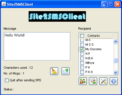 Site2SMSClient is a java tool, used to send SMS over India using Site2sms website.