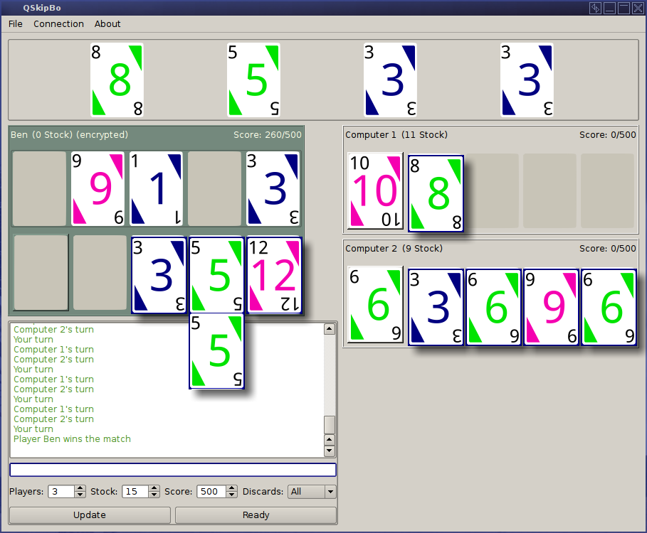 Supports up to 1-6 remote players and up to 5 AI players. Remote connections may optionally be encrypted depending on client settings. Chat log, event sounds and more.