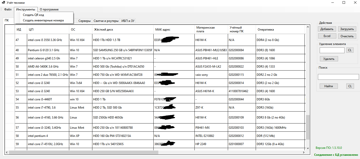 Программа складского учёта техники для системных администраторов. Это минималистическая замена дорогим программам учёта. В организации до 300 -т человек этого вполне достаточно.