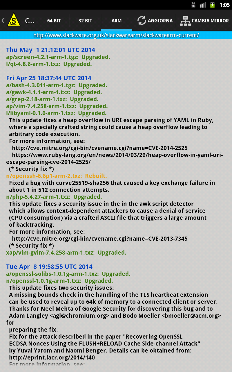 SlackLog is an app for Android devices that helps you to check if updates are available for current Slackware Linux.