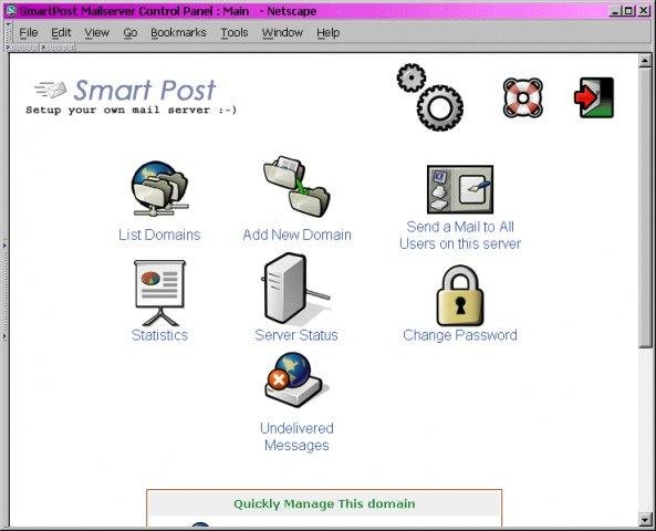 SmartPost software provides the total electronic mail solution using UNIX/Linux,with IMAP,POP,webmail access as well as web-based administration and web-based control over the mail server.Project is closed.There are some better solutions on marketnow