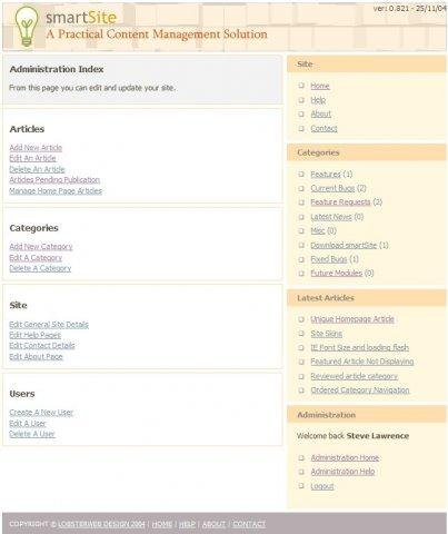 An easy to use content management system (CMS) using PHP and mySQL aimed at people who want to create a professional site with the minimum of fuss. The site can be installed in less than 10 minutes and needs no further configuration.