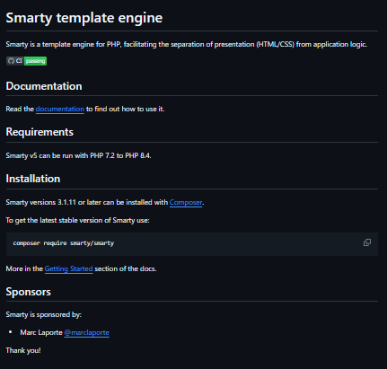 Smarty is a robust and widely-used templating engine for PHP that separates logic from presentation. It allows developers to create clean, maintainable, and reusable templates using its simple syntax. Smarty supports features like caching, custom plugins, and template inheritance, making it suitable for both small and complex applications that require flexible and efficient frontend rendering.