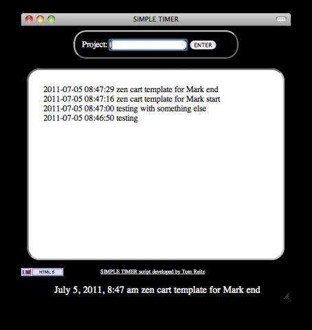 Ok, so this came about because I was annoyed to NOT find an easy project timer application for the Mac nor anything easy in php… SOOOOO, I decided to finally write one myself. This is a web app requiring PHP and MySQL. this is stable at v0.1 -Tom