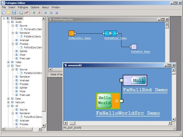 The FxEngine is an Open C++ Framework under LGPL license. The FxEngine Framework simplifies the plugin architecture for the data flow processing. It provides a full control to the plugin architecture for applications that require custom solutions.