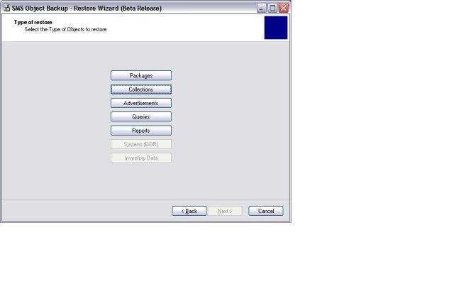 Backup and restore a definable set of SMS 2003 Objects (Packages, Programs, Advertisements, Collections...). SMSObjBackup can also be used for Site Migration (Objects can be moved to another SMS Primary Site Server)