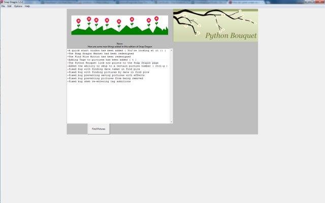 Snap Dragon is a picture sorting program. Pictures are displayed in the program and when the number keys are pressed it saves that picture to a folder corresponding to that number key.