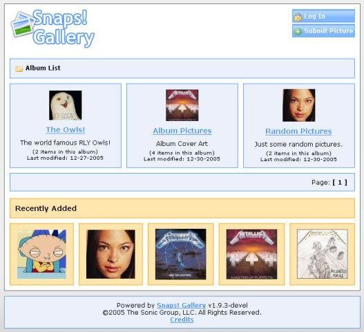 Snaps! Gallery is a simple and easy-to-use image gallery written in PHP. Snaps! makes use of the ADOdb library for database portability and the Smarty Template Engine for theming.