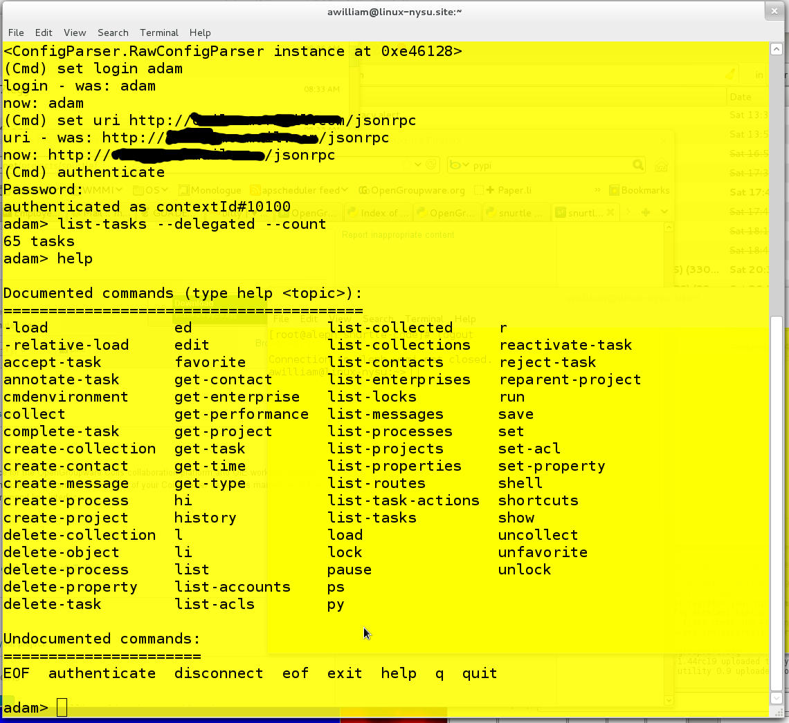 A command-line interface for the OpenGroupware Coils collaboration platform and OIE workflow solution. Using snurtle you can manage and examine the content of your Coils server as well as manage workflows all from a convenient command line interface
