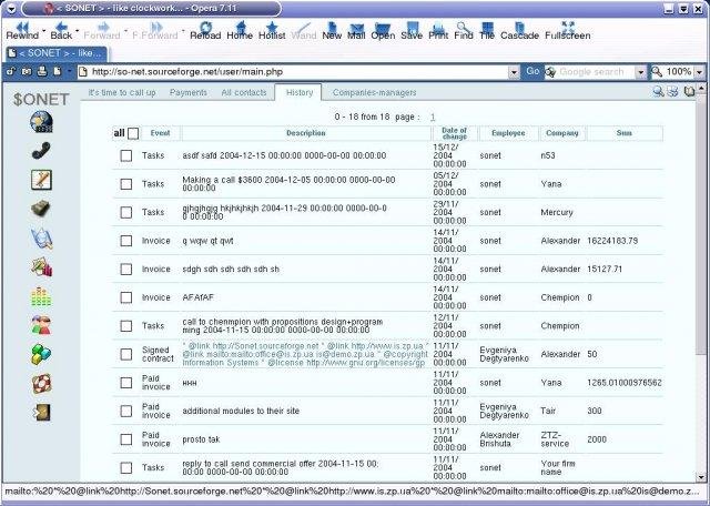 Sonet is a new CRM system. This soft solves a wide range of problems reffering to general activity arrangement of your company and bridging with clients. Invoicese, statistic, tasks,projects and documents managing.Platform: Windows/Linux,PHP+Apache+MySQL