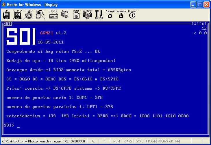 SO1 es un proyecto para crear un sistema operativo sencillo con el que poder explicar rapidamente los conceptos implicados en el desarrollo de estos sistemas. SO1 permite que los estudiantes consoliden sus conocimientos prácticos de sistemas operativos ampliando el sistema que se ofrece de partida.