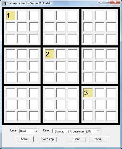 Simple and easy-to-use solver for Sudoku puzzles. Games are loaded from a server or manually entered. Generic interfaces for plugging any solver and/or game loader/generator.
