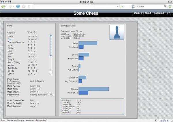 Some Chess was written in pure PHP using a MySql database as a backbone. It is multiplayer only allowing players to play together in realtime or in a correspondence style.
