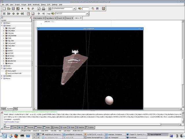 3D space flight combat simulator. Programmed in C++, OpenGL and SDL to be portable across several platforms and operating systems. Light weight graphics with the emphasis on game play, speed and portability.