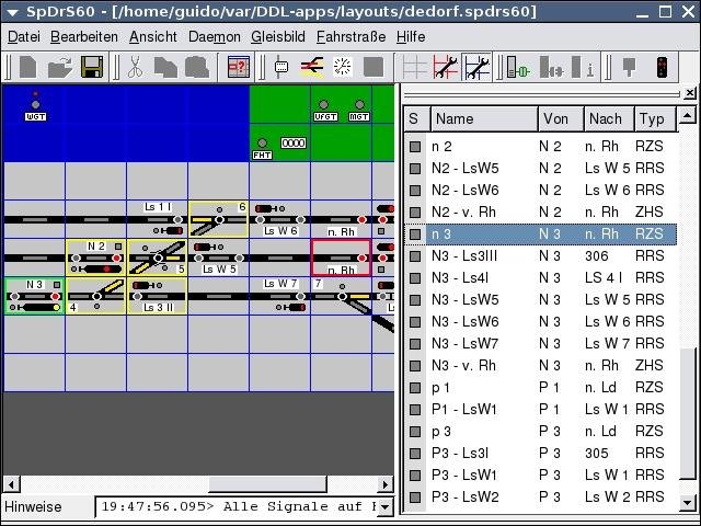 spdrs60 is a graphical SRCP client to comfortably control a digital model railway. Visual appearance and usage comply to the original SpDrS60 German Federal Railway company locking table. A SRCP server (e.g. erddcd or srcpd) is needed as a hardware link. In cooperation with train controller dtcltiny (http://dtcltiny.sourceforge.net/) spdrs60 provides support for train automation.