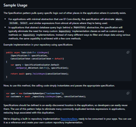 Specification is a .NET library that implements the Specification pattern to encapsulate query logic into reusable, composable objects. Its primary goal is to pull filtering, sorting, and projection logic out of repositories and services, reducing duplication and improving maintainability. The library works especially well with Entity Framework Core, enabling developers to centralize query definitions instead of scattering LINQ expressions throughout the codebase. By defining specifications as classes, teams can build complex query rules that remain testable and easy to reason about. The project is used in Microsoft’s reference application eShopOnWeb and aligns closely with clean architecture principles. Overall, Specification provides a structured approach to query reuse and domain-focused data access in modern .NET applications.