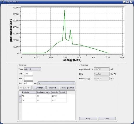 SpectrumGUI can generate filtered spectra for various x-ray tubes and