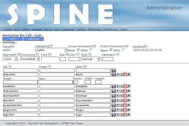 Spine is a mod_perl webbased content management application (with database backend)