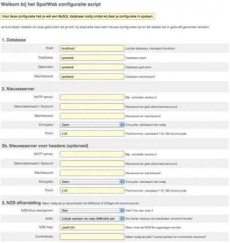 Installatiescript die het gemakkelijk maakt om SpotWeb te configueren. Hierdoor is het niet meer nodig om de settings.php zelf aan te passen.