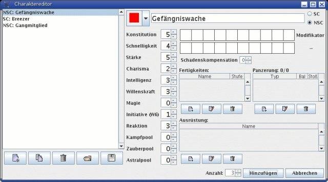 This project is a clone/improvement of the "Shadowrun-Assistent" (on shadowrun.de) written in Java 5.0. The main goals are: better usability, minor feature improvements and i18n. It constists of a character editor, an initiative manager and a dice roller.