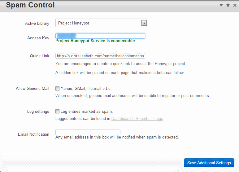 SR Project Honeypot is a Concrete 5 package that integrates into the Concrete 5 Spam framework.