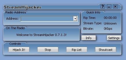 StreamHijacker is a small Open Source stream ripper application and you can easly save audio or video contents from the internet radios or video servers without any modifications or data loss. It's supports ShoutCast and IceCast protocols.