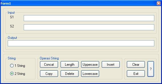 hi, I'm going to start a new project to create software for "string operation" like concat, delete, copy and the other using delphi7 but I can not continue this project because I'm still new to use delphi7, so I need some help to finish it.