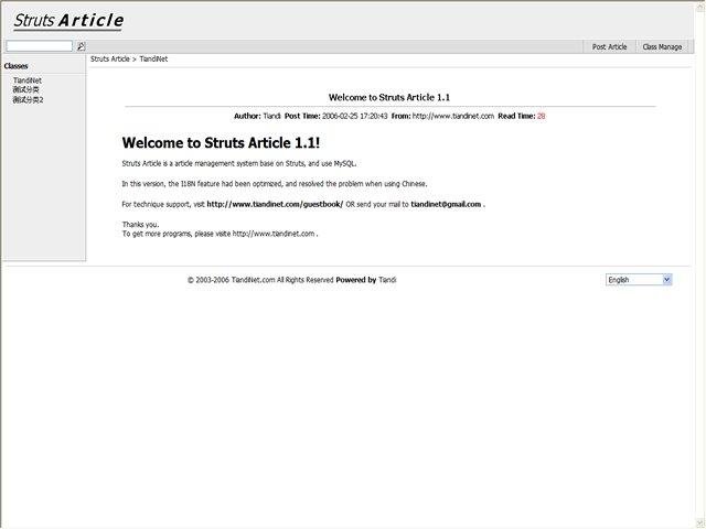 Struts Article is a simple article management system base on Struts. It use MySQL.
