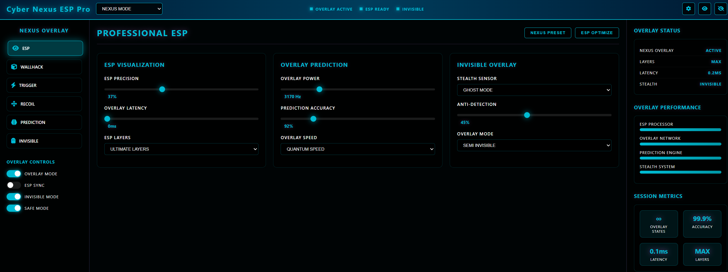 Super Universal ESP Overlay - premium overlay solution for all popular games. Supports Valorant, CS:GO, Apex Legends, Fortnite, Warzone, PUBG, Overwatch, R6 Siege, Rust, Escape from Tarkov. Works with Unreal Engine, Unity, Source Engine. Perfect overlay for FPS shooters and tactical shooting.